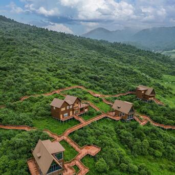 🚗自驾方式较佳,有停车场,但是到木屋这里需要换乘景区的直通车