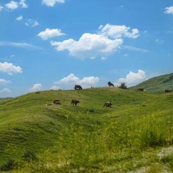 抹茶绿真的很治愈,生命就该浪费在这样的地方,蓝天、白云、草原、森林、牛群,无论从哪个视角望去都像一幅美丽的画卷,又像是闯进了宫崎骏的动漫世界。